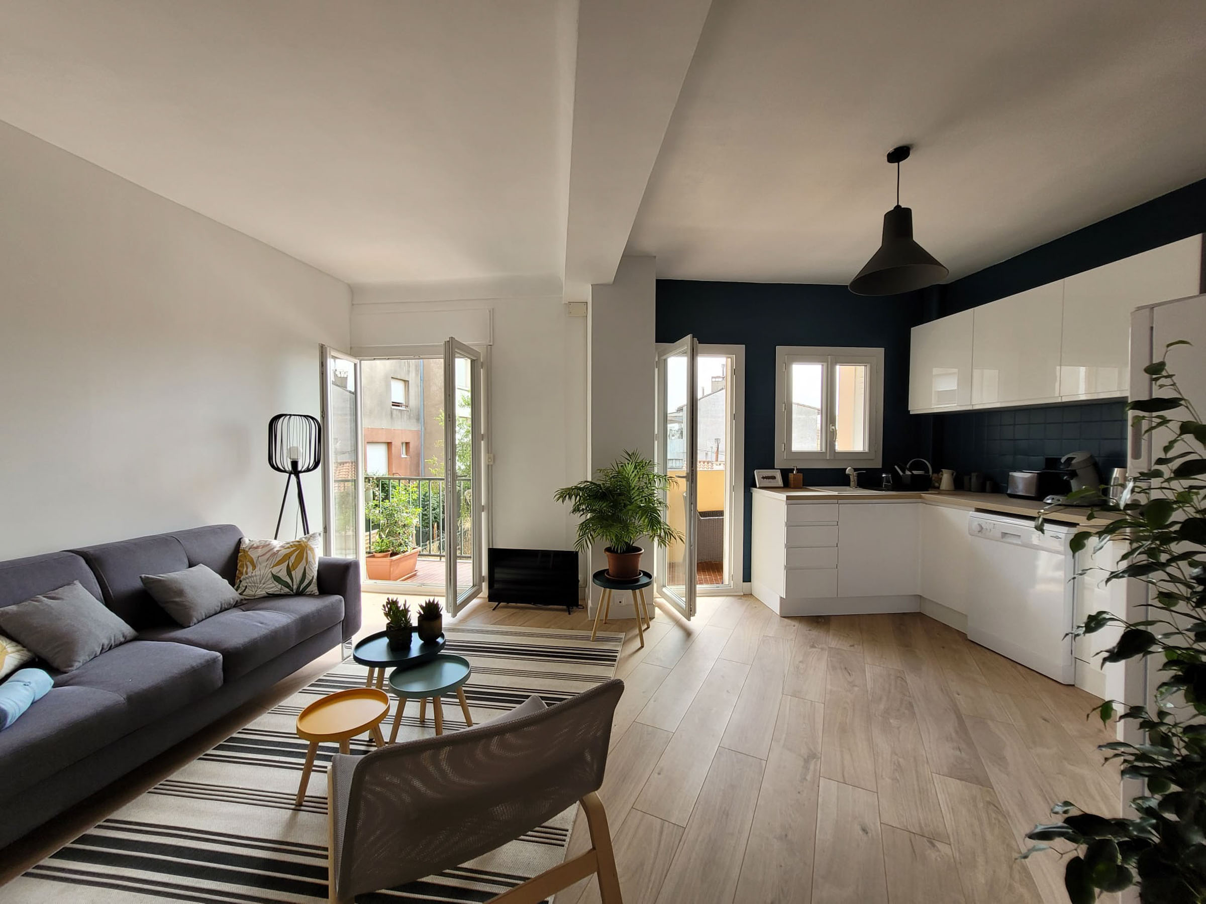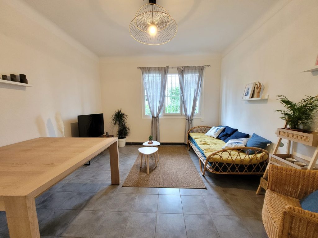 Appartement de 67 m2 très lumineux situé à 5 minutes en voiture du centre de Perpignan. L’appartement est composé de deux chambres avec lit doubles avec tiroirs, bureaux et espaces de rangements. Accès à un petit jardin côté rue. L’appartement se situe au rez-de-chaussée et se compose également d’un salon avec télé et cuisine toute équipée.